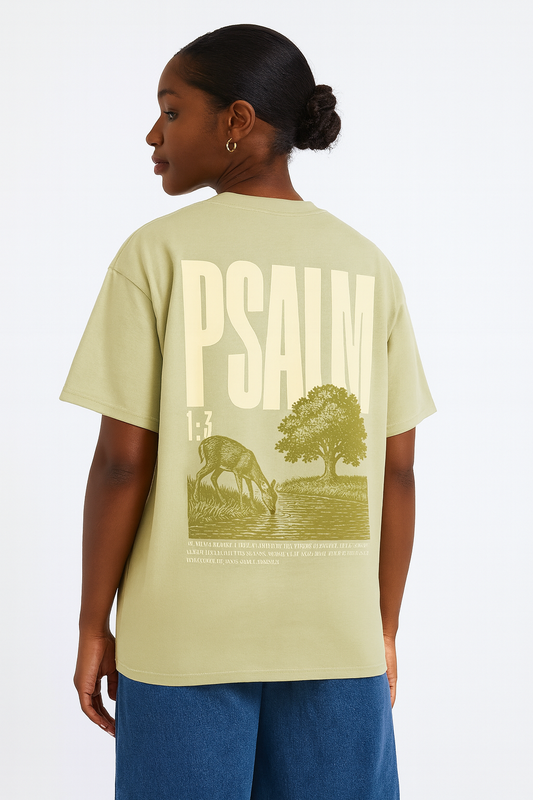 Inspired by Psalm 1:3, this design is a reminder to stay grounded in God’s word, like a tree planted by living water. “Rooted in Him” is more than a phrase — it’s a quiet declaration of faith for every season.